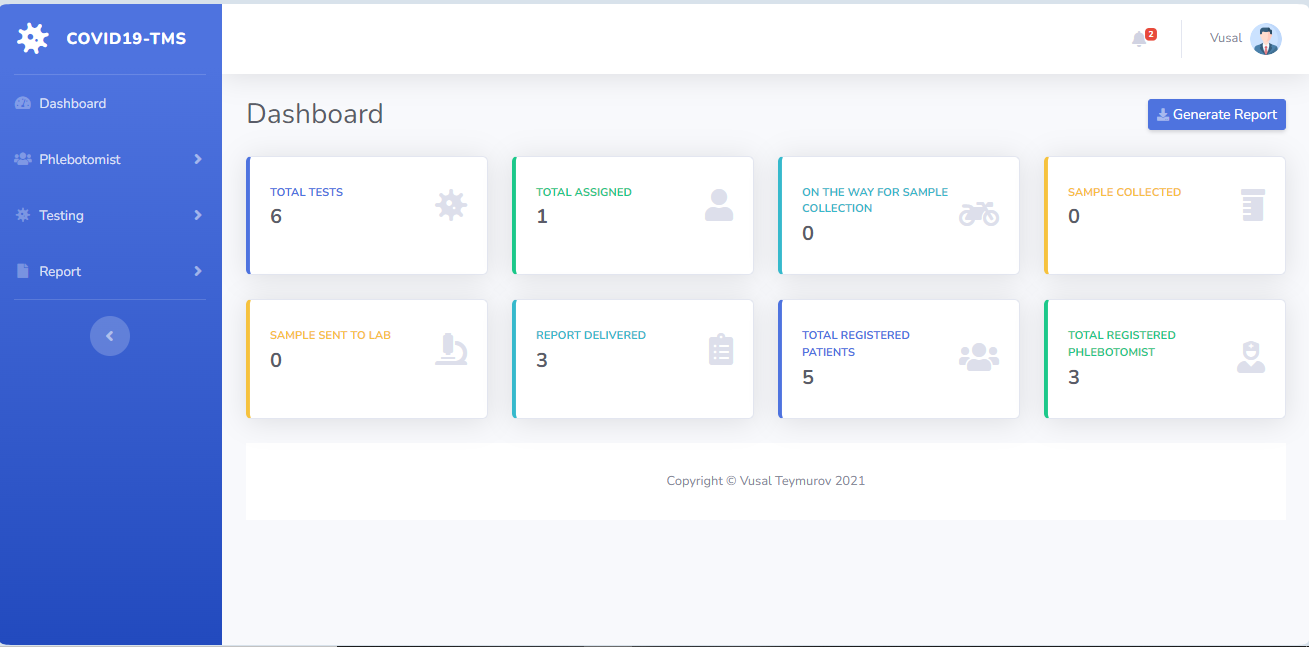 - In this section, the admin can see all detail in brief like the total, assigned and the sample collected and completed tests.