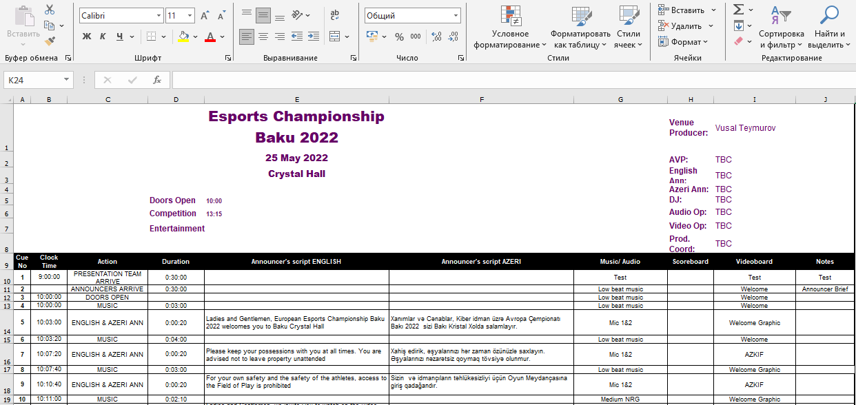 I was responsible for coordinating the technical aspects of the European Esports Championship Baku 2022 held at the Crystal Hall in Baku. My role encompassed ensuring the seamless execution of the event, from audiovisual setups to operational logistics.